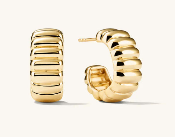 These gold hoop earrings are a collection must-have. Plated in 14k gold and featuring a chunky silhouette, these hoops are perfect for everyday wear. Stack these hoop earrings with our small GIULIA hoops for an effortless coordinated 1look.